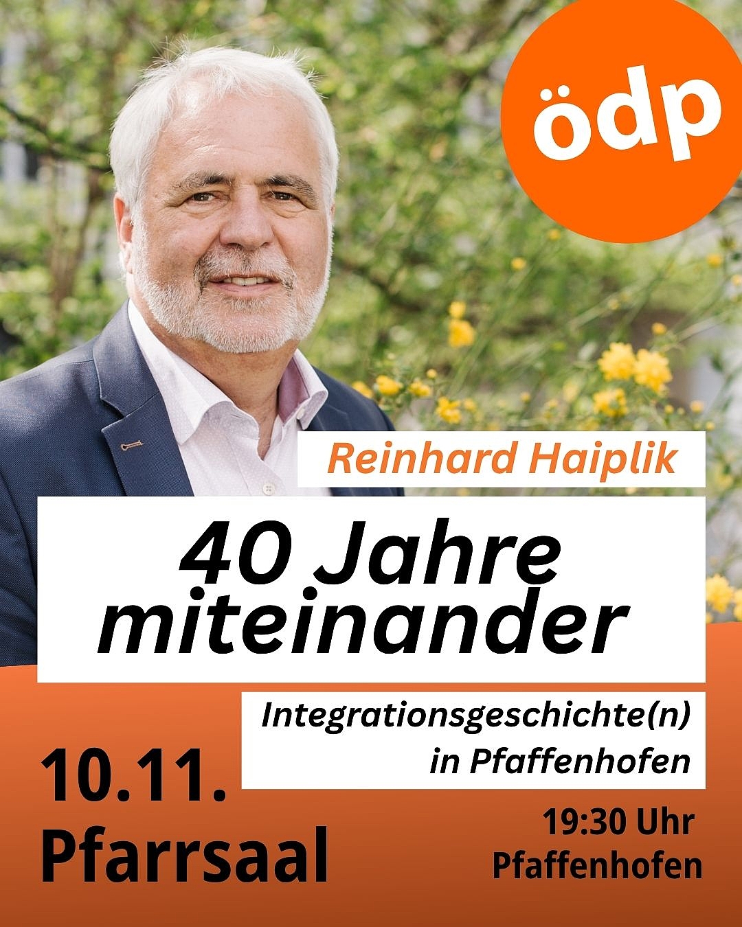 Reinhard Haiplik war lange Jahre Integrationsbeauftragter und erlebte die Anfänge der Zuwanderung in Pfaffenhofen mit. Als ÖDP-Kreisrat und Mitglied im Stadtrat Pfaffenhofen hat er sowohl die menschlichen als auch politischen Reaktionen beobachtet. Er nimmt uns mit auf eine Reise durch vier Jahrzehnte Migration und gelebte Integration.