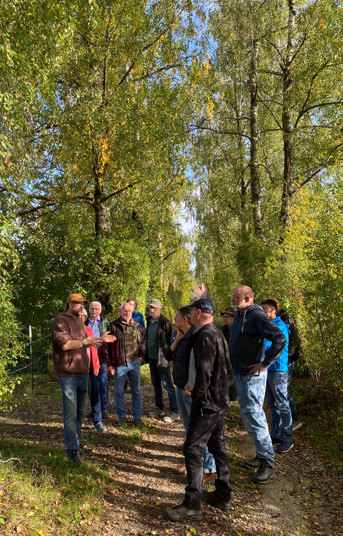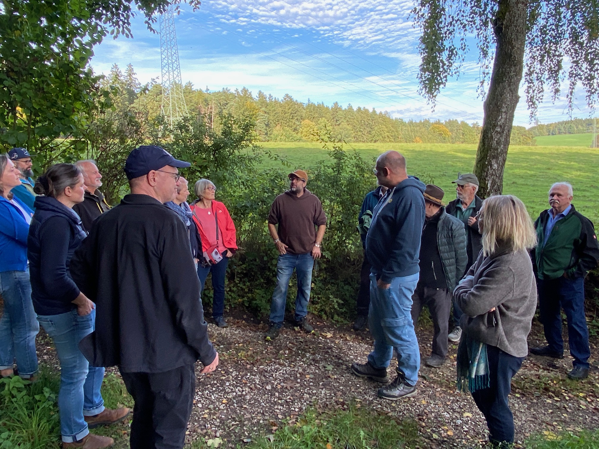 Zuvor jedoch informierten Sie sich auf dem Ehrensberger Hof, dem Musterhof der Firma Hipp, über die Maßnahmen, die dort getroffen werden, um die Artenvielfalt zu schützen und zu fördern. Der Betriebsleiter Armin Günter ist Mitglied des LBV und zeigte und erklärte mit enormem Sachverstand und Engagement die Probleme, die durch intensive Landwirtschaft und verschwenderischen Konsum für die Natur und damit verbunden für Biotope und Arten entstehen. Mit einfachen und oft sogar kostensparenden Maßnahmen könne die Artenvielfalt jedoch unterstützt werden. „Die Natur ist stark und erholt sich schnell,“ zeigte er auf, um sofort darauf einzuschränken: „noch.“ Denn es sei wirklich höchste Zeit die Wirtschaftsweise zu ändern. Dass das nicht schneller gehe, sein nicht vorrangig die Schuld der Bauern. Auch die Politik, die Gesellschaft und jeder einzelne Konsument müsse dazu beitragen. Günter appellierte an die Verbraucher, ihr Einkaufsverhalten zu ändern, mehr auf Bio und Regionalität zu achten und den Fleisch- und Wurstkonsum zu reduzieren. „Jeder kleine Schritt in die richtige Richtung bringt uns weiter“, bekräftigte er.